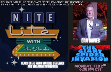 The film that put Wisconsin on the cinematic map is back! The cult classic film, "The Giant Spider Invasion" (a Top 50 Box Office Film of 1975) is getting a reimagined rebranding! Never in the history of Hollywood has a film been directed again by its original director 50 years later! Film legend Bill Rebane (he's almost 89!) will be helming this new iteration with planned filming in the Fall of 2025 with a 2026 release! This reimagined blockbuster will be filmed in Wisconsin, starring Wisconsin's very own Dan Davies, the No. 1 American Box Office Actor in the history of Nollywood. Dan's films have been seen by over 50,000,000 people theatrically (Africa & Europe) and worldwide on Netflix & Hulu. Coupled with an all-star production team, this reiteration promises to be scarier, campier, creepier and leggier! Come join us as we hit the ground running on all 8 hairy legs!
